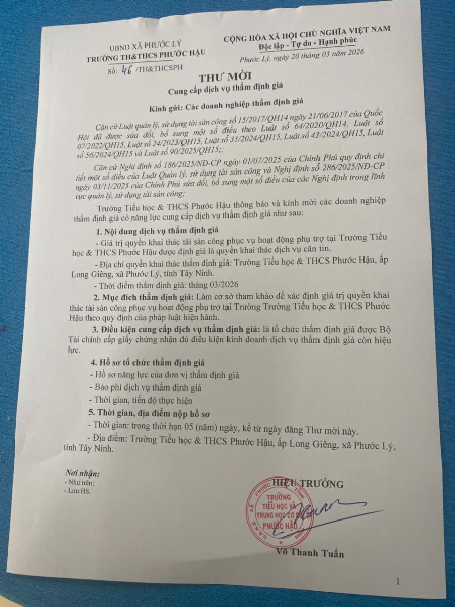 Ông Nguyễn Thanh Lộc ( Phó phòng LĐTB-XH huyện ) và Bà Võ Thị Hồng Phương ( PTC UBND xã Phước Hậu trao dụng cụ học tập cho học sinh